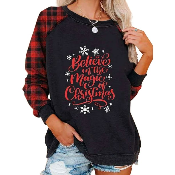 Long Sleeve Christmas Plaid Tops For Women Casual Reindeer Print T Shirt Merry Christmas Blouse Walmart Com